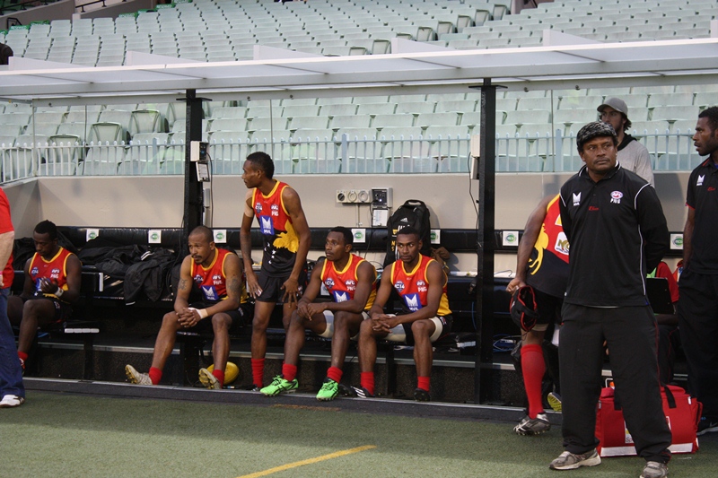 PNG started to gain a foot hold in the match as their dynamic ruckman John Ikupu began to have a huge influence. Crucially they managed to get on the score board at the death of the first quarter. Gregory Ekari found Jeconiah Peni who went back and kicked an excellent goal after the siren off a slight angle from 48 meters.